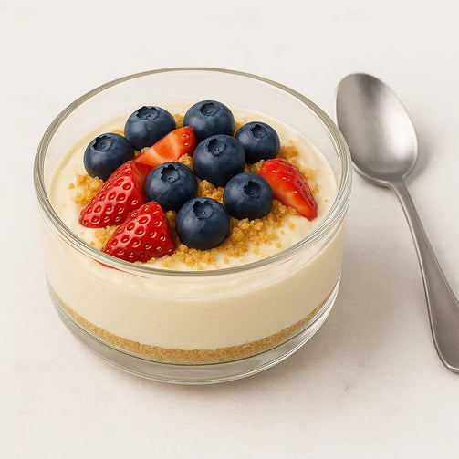 Introducing Nutre's High Protein Cheesecake! A decadent dessert reimagined for the health-conscious. We've perfected the art of indulgence by blending rich cream cheese with protein-packed Greek yogurt, topped with fresh strawberries and blueberries. Every velvety bite delivers that classic cheesecake experience you crave, while supporting your nutrition goals. The perfect balance of creamy texture, natural sweetness, and satisfying protein. Treat yourself to dessert that works as hard as you do - only from Nutre!